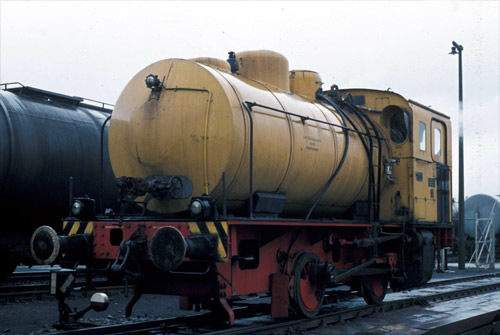 Erdöl-Raffinerie Emsland: Bei Schmuddelwetter konnte Martin Welzel die Dampfspeicherlok Nr. 2 am 6. April 1977 fotografieren.