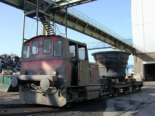 Benteler AG: Die O&K FNr. 25772 wird zusammen mit den Schlackekübeln am Ofen eingesetzt. Dieser Bereich ist nicht öffentlich zugänglich, die Aufnahme hat die Benteler AG freundlicherweise zur Verfügung gestellt. (Foto: Bentler AG)