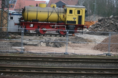 28.02.2009-info/ cj/ Die Dampfspeicherlok wurde auf einem Gleisjoch vor der Halle aufgestellt. Was nunmehr mit der Lok geschieht ist bisher nicht bekannnt.