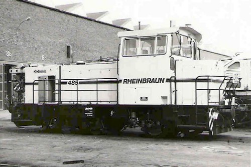 RBW: RBW 485 (Gmeinder 5633) in der Hauptwerkstadt Frechen-Grefrath (Foto: 11.05.1985, Peter Ziegenfuss)