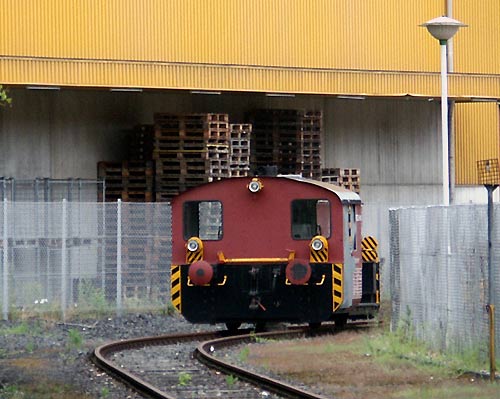 05.06.2004/ jm/ Die Köf II ist weiterhin vorhanden, sie konnte vom Bahnübergang vor dem Werkstor mit Tele abgelichtet werden.