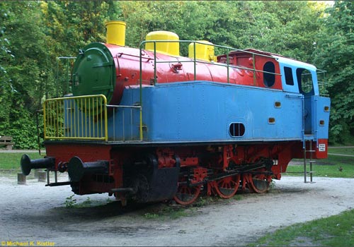 30.09.2012/ jl/ Die Krupp FNr. 1845/1939 ist unverändert als Spielplatzlok "im Einsatz", hat aber leider noch eine zusätzliche Verkleidung erhalten.