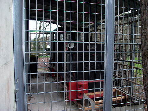 24.11.2002/ pz/ In einem “Käfig” ist dort eine DIEMA Lok vandalismusressitent aufgestellt. Eine Beschädigung ist nur möglich, sofern das Gitter mit einem Schweissbrenner geöffnet wird. Demzufolge ist ein Foto leider fast unmöglich.