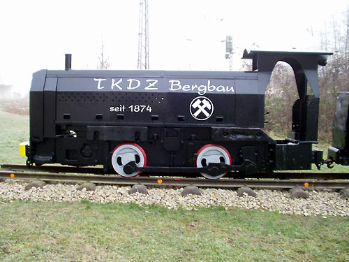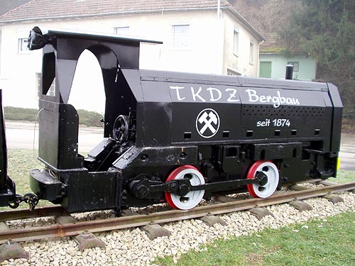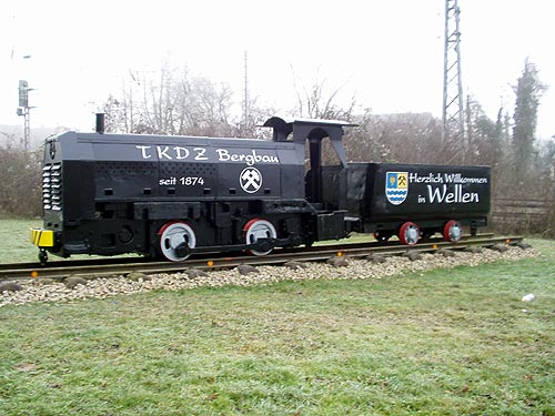 19.11.2005-info/ pz/ Nach telefonischen Erkundigungen bei der örtlichen Gemeindeverwaltung soll es sich bei der an der Zufahrt zum Kalk- und Dolomit-Werk als Denkmal aufgestellten Lokomotive um eine eine ehemalige Werkslokomotive der Trierer Kalk- und Dolomit Werke (heute TKDZ GmbH) handeln. Eine interessante Firmenchronik findet sich unter www.tkdz-wellen.de.