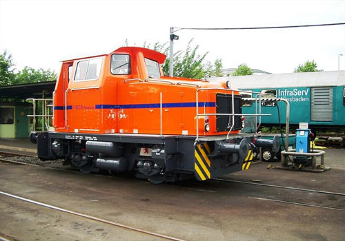 31.05.2006/ wr/ Bei InfraServ in Wiesbaden wird Anfang Juni die Deutz FNr. 58114 für ihren Einsatz bei der Ineos (ehem. Degussa) in Mainz-Mombach vorbereitet. Die Lok war breits im Januar 2006 drei Wochen zum Probebetrieb dort. Die bisherige Werkslok, eine Henschel DHG 240, ist damit abgelöst.