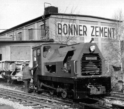 Bonner Portlandcement: 1956 lieferte Ruhrthaler zwei baugleiche Lokomotiven an die Bonner Portland-Zementwerke. Kurz nach der Anlieferung machte der Obermonteur Strunk diese Aufnahmen für das Werksarchiv der Firma Ruhrthaler. (Fotos: Strunk - Archiv Ruhrthaler)