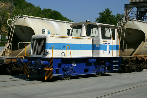 Schäfer Kalk KG: Die Werklok bei der Arbeit fotografierte Bernhard Külzer am 20. Juli 2001.