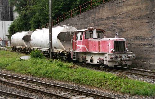 16.03.2003-info/ wr/ Bei der Firma InfraServ/Wiesbaden derzeit in Aufarbeitung: Gmeinder Werkslok der Kalkwerke Schäfer aus Stromberg, welche eine HU mit Neuantrich erhält.