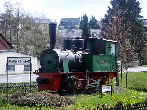 07.11.2003-info/ pz/ 18.04.2004/ 04.07.2004/ jm/ Die Lok steht direkt an der B274, die hier den Straßennamen "Brückenwiese" trägt. Leider zeigt die Front der Lok nach Norden, so dass nur früh morgens oder zum Abend die Lok fototechnisch gut im Licht steht. Sie ist offenbar erst vor kurzem äusserlich aufgearbeitet worden und präsentiert sich so im besten Zustand.