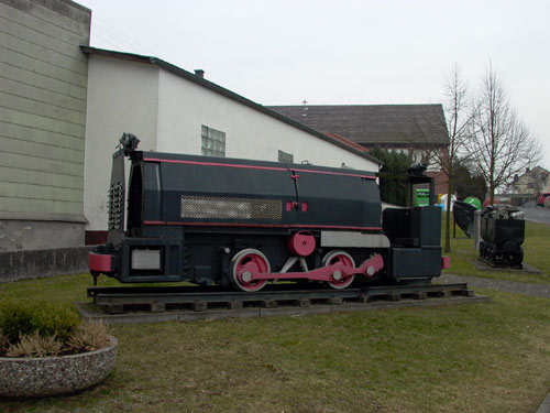 22.02.2004/ pz/ Hier wurde als Denkmal eine 750 mm Grubenlokomotive (Deutz 46908) als Denkmal aufgestellt. Die Lok stammt von der Zeche Walsum.