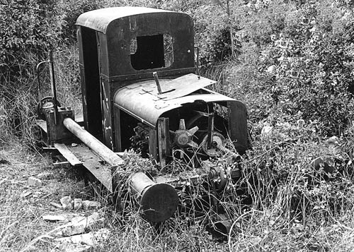 23.06.2004-info/ jm/ 30.07.1976/ rb/ Am Ende des Anschlussgleises steht ein seltsame Lok, ein Umbau einer Feldbahnlok auf Normalspur.