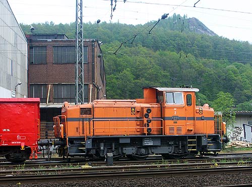 27.05.2005/ jm/ Beim ehemaligen Bü unterhalb der HTS traute sich die Nr. 5 in den Bf Geisweid und holte dort Wagen ab. Die Nr. 7 war eilig auf dem Werksgelände unterwegs.