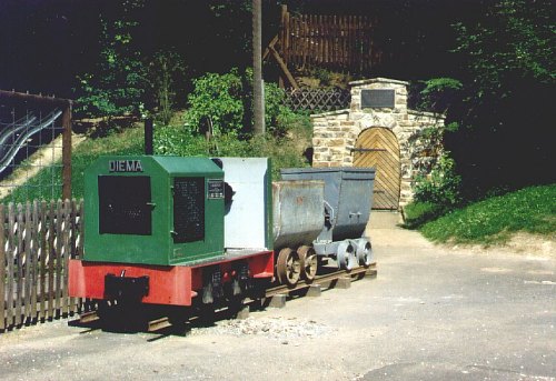 26.02.2000/ jm/ Die Diema mit dem Fabrikschild FNr. 1983 ist weiterhin vorhanden. Neben der Lok beim Stollen wurde eine Art kleine Kapelle gebaut, darin wird wohl ein Heimatmuseum entstehen.