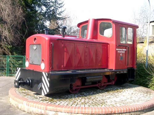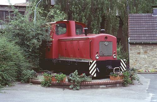 24.05.2002/ gm/ Auf dem Parkplatz der Firma Wälzholz steht als Denkmal die Lok (O&K 25989/1960/MV8) der früheren Hohenlimburger Kleinbahn und erinnert noch immer an vergangene Zeiten.