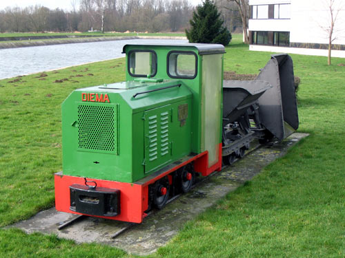 Bis 1959 wurden die bei der Reinigung der Filterbecken jählich rund 3000 t verschmutzer Filtersand mit Loren auf Feldbahngleisen aus dem Becken zur Sandwäsche gefahren. Hierfür wurde ein Pferd angemietet. Ein zweimonatiger Einsatz einer gebrauchten Diesellok 1958 ergab jedoch, dass ein Lokbetrieb wirtschaftlicher ist und so wurde 1959 aus vier vorliegenden Angeboten das der Firma Diema ausgewählt. Knapp 16 Jahre war die Lok im Einsatz, dann wurde sie 1975 als Denkmal aufgestellt.