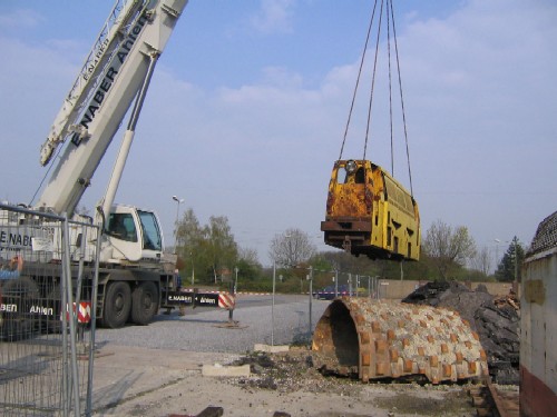 Anlieferung der Lok: Bisher konnte die Deutz-Lok nicht identifiziert werden. (Foto: 24.04.2008, Theo Janssen)