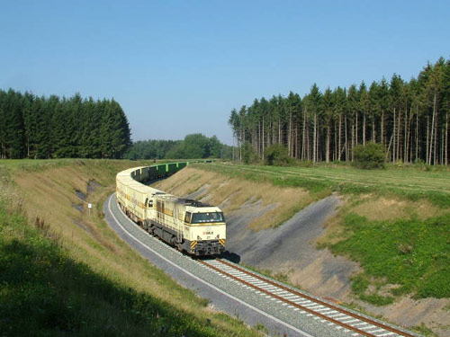 WLE: WLE 34 mit einem Steinzug bei Lippstadt auf dem Weg nach Neubeckum. (Foto: 30.08.2005, Stefan Kunzmann)