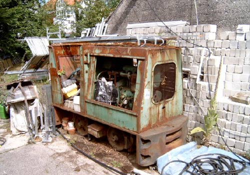.06.2003/ werkbahn.de/ Im Frankfurter Feldbahnmuseum traf am 26. Juni die Jung FNr. 7798/1938 ein. Die Lok vom Typ ZL 105 (B-dm, 600 mm Spurweite) wurde laut dem der Lok noch beiliegenden Kaufvertrag aus 1938 als Leihlok über den Händler Fritz Kirchhhoff in München an die Baufirma A. Schüle in Ulm geliefert. Dort wurde sie nach Ablauf der Mietzeit gekauft, im Reichsautobahnbau und dann bei der Trümmerbahn Ulm eingesetzt. Seit den 1950er Jahren stand die Lok konserviert mit allen Schildern und ihrem Bordwerkzeug in einer Halle der Fa. Gaiser in Ulm, von wo sie nun geborgen wurde.