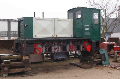 09.09.2003/ ffm/ Nachdem wir bereits eine Vielzahl von Feldbahnlokomotiven aus Übersee und anderen europäischen Ländern nach Deutschland geholt haben, wurden das FFM nun erstmals in Dänemark aktiv. Dank der Freunde von der “Hedelands Veteranbane” in Hedehusene bei Kopenhagen war es möglich, die weltweit letzte original erhaltene Lokomotive der ehemaligen Motorenwerke Oberursel für das FFM auf Basis eines Leihvertrages zu erwerben. Es handelt sich um bei den Motorenwerken in Oberursel/Taunus unter noch unbekannter Fabriknummer und Type gebaute Feldbahndiesellok. Der Empfänger der Lok ist noch unbekannt - letzter eigner war die Baufima A. Jespersen & Sohn in Kopenhagen. Nach ihrer Ausmusterung wurde die Lok 1949 im Fort Kastrup bei Kopenhagen als Spielplatzlok aufgestellt, bevor sie 1982 unserer dänischen Freunde übernahmen, um sie vor weiterem Verfall zu bewahren. Zu einer Aufarbeitung kam es dort wegen vordringlicher andere Projekte zunächst nicht, zumal die dortige Spurweite von 700mm einen Einsatz ohnehin nicht zulässt.