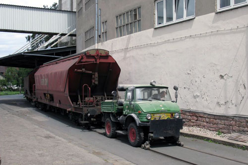 15.02.2007/ rm/ 20.07.2009/ mh/ An der Verladestation rangierte der Unimog die Güterwagen zur Verladung.