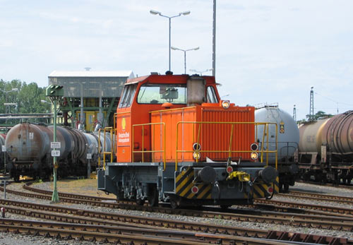 15.08.2003/ jm/ Anstelle der normaler Weise hier angetroffenen MaK-Lok war heute hier die DE 769 mit Endführerständen leihweise im Einsatz.