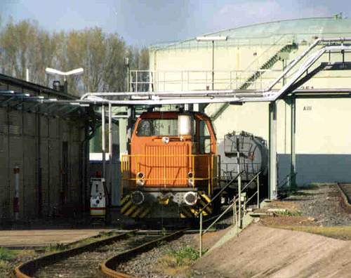 Deutsche Shell AG: Die MaK FNr. 700034/1979, im Hintergrund ist die Abfüllanlage zu sehen. (Foto: Jens Merte)