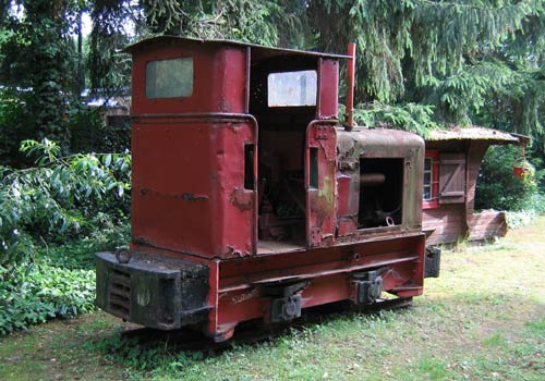 02.05.2004/ pk/ Die Lok steht im Garten und befindet sich in einem schlechten Zustand. Sie stammt aus dem Phyrix-Werk in Okriftel. Früher soll es auch mal eine ehem. Spielplatzdampflok hier gegeben haben.
