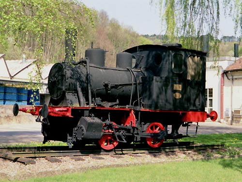 06.07.2003-info/ pz/ .04.2003/ mk/ Die normalspurige Rangierdampflok, die früher hier im Einsatz war, steht heute als Denkmal bei der Firma Textron Verbindungstechnik. Die Lok steht gleich beim Eingang der Firma Karcher (die jetzt zum Textron-Konzern gehört), das Fotografieren der Lok wurde problemlos erlaubt. Fotos macht man hier am besten vormittags.
