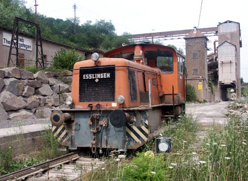 25.07.2004/ jm/ Auf den Anschlussgleisen standen keine Wagen, jedoch scheint die Esslinger einsatzbereit zu sein. Die Deutz hingegen wurde offensichtlich schon etwas länger nicht mehr bewegt, sie steht am Ende des Anschlusses, der im Schlamm eines Feldweges endet. Die Deutz trägt ein kleines Schild "Spoorijzer Delft", letzte Erinnerung an den ursprünglichen Einsatz in den Niederlanden. An der Esslinger ist ihre Herkunft auch noch zu erkennen, am Führerhaus ist noch schwach "Saarbergwerke AG" zu lesen.