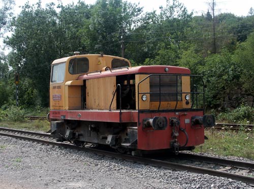 02.10.2005/ pz/ Im Vorbeifahren wurde eine gelbe Werklokomotive gesehen. Es dürfte sich um die Moyse FNr. 1079 handeln.