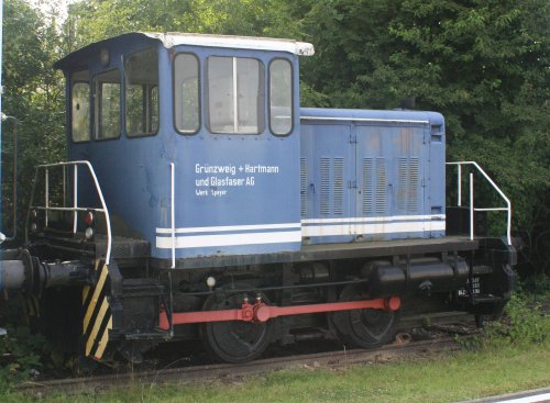 15.02.2004/ rab/ Die drei Lokomotiven wurden zusammenstehend angetroffen. Betriebnummer 249 könnte die Gmeinder FNr. 5374/1965 sein (zuletzt in Mannheim-Waldhof gemeldet), ist es wirklich diese? Hier wurden/werden auch die O&K MB170N FNr. 26745/1975 und MB200N FNr. 26795/1974 eingesetzt, ein Schild konnte als 2679x entziffert werden. Diese 26795 wurde zumindest zuletzt auch als Einsatzlok gemeldet. Die Cockerill steht auf einem abgetrennten Gleis mit der Front im Dickicht, dahinter steht ein Großraumwagen von ISOVER.