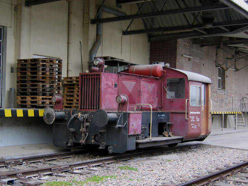 02.06.2003/ jm/ Die Köf II in rot ist vorhanden, scheint sich aber seit der letzten Sichtung im Februar 2003 von nicht bewegt zu haben? Früher gab es hier auch eine kleine Gmeinder-Rangierlok, welche heute nicht weit entfernt im Landesmuseum für Technik und Arbeit in Mannheim steht.