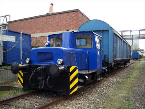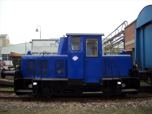 09.04.2006/ pw/ 1931 als Familienunternehmen in Mannheim gegründet, ist Fuchs heute ein Konzern von globaler Reichweite und unter den unabhängigen Unternehmen der weltweit größte Anbieter von Schmierstoffen. Die ständige Erweiterung des Unternehmens zwang auch am Hauptsitz in Mannheim zu Veränderungen. Deshalb wurde 2001 ein vollautomatisches Logistikzentrum eingeweiht. Die Eingrenzung des Standorts vorne von der Friesenheimer Straße, hinten von Bahngleisen und rechts und links von Nachbarn machte aber eine direkte Anbindung des Lagers an die Produktion unmöglich. Dies übernimmt vermutlich heute die blaue Schöma. Dazu wurden allem Anschein nach auch drei blaue gedeckte Güterwagen angeschafft die ehemals als FORD-Privatwaggons unterwegs waren. Diese wurden mit Lauffähigkeitsbescheinigung Anfang des Jahres nach Mannheim überführt. Des weiteren wurden klappbare Verladerampen an beiden Werksteilen installiert, sodass eine problemlose Be- und Entladung der gedeckten Güterwagen mit Staplern möglich ist. Und so verbindet nun der „Blaue Zug“ die Produktion mit dem Auslieferungslager und fährt dabei täglich an der benachbarten Speditionsfirma vorbei.