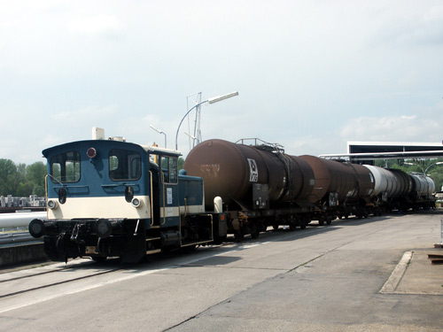 15.05.2004/ jm/ Die blau-beige Köf III wurde am Becken 24 gesichtet. Die zweite Köf III konnte von der Straße aus nicht gesichtet werden, da aber mindestens zwei Kesselwagen an der Verladeanlage standen, dürfte auch diese Lok noch vorhanden sein.