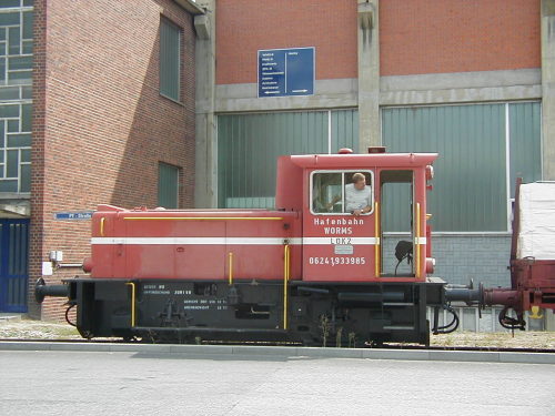 Am Fototag (19.08.2003) konnte hierbei eine Köf III beobachtet werden, die wohl vor Kurzem als "LOK 2" von der "Hafenbahn Worms" erworben wurde; wie die Beschriftung verrät. Nach meinen Kenntnissen sind die "Werksbähnler" aber keine Mitarbeiter von SCA mehr. Die Arbeit wurde wohl an ein Logistikunternehmen ausgelagert.