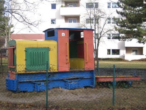 Spielplatz Herrenwaldstrasse: Die bisher nicht weiter identifizierte Gmeinder-Feldbahnlok. (Foto: 06.02.2006, Peter Flaskamp)