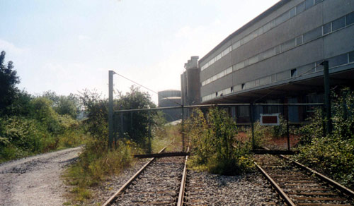 Die Gleise sind heute alle noch vorhanden. Am Ende des hinteren Ladegleises steht noch ein Lokschuppen. Angesichts der vielen riesigen Silotürme auf dem DLW- Gelände ist es eigentlich unverständlich, das der Bahnbetrieb überhaupt eingestellt wurde.
