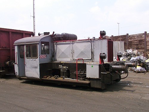02.06.2003/ jm/ Wenn man hier fragt, ob man die "kleine rote Lok" fotografieren darf, dann bekommt man hier erst mal ein "Nein" - naja, die Lok ist halt nicht mehr rot, sondern mittlerweile grau :-) Es ist aber immer noch die gleiche Lok, die hier seit 14 Jahren im Einsatz steht und in der Woche etliche Wagen zum Beladen und anschliessendem Wiegen und hin und her rangiert. Nach einem kurzen Gespräch mit den Chefs durfte die Lok abgelichtet werden. An der Wand im Büro hängt übrigens ein Bild von der Lok noch in rot, welches von Steffen Hartwich stammt (wer es sich ansehen möchte: http://home.arcor.de/steffenhartwich/eisenka.htm).