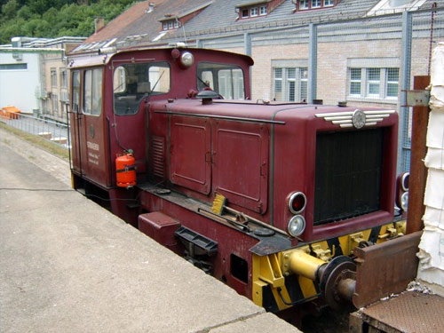 Die langjährige Werklok hat die Turbulenzen überlebt, wird im Gegensatz zur Karlsruher Werkslok noch eingesetzt, und ließ sich am wunderschön organisierten Tag der offenen Tür zum 100-jährigen Jubiläum des Standortes sogar fotografieren. Der Anschluss wird von der AVG bedient.