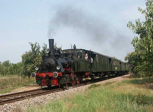 Achertäler Eisenbahnverein e.V.: Die Badenia kurz nach dem Verlassen von Oberachern. (Foto: 17.08.2003, Jens Merte)