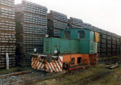 01.05.2003/ jm/ Vor Neuenburg liegt die Siedlung Richtberg, die im Wesentlichen aus dem Richtberg-Holzwerk und dessen Sozialgebäuden besteht. Die ganze Anlage ist sehr sehenswert. Das Anschlussgleis führt über eine Spitzkehre ins Werk und wird auch heute noch rege genutzt, so standen heute drei Flachwagen für den Transport von Schwellen auf dem Gelände. Zum Verschub dient eine Deutz-Rangierlok, aber auch eine Spillanlage ist hier noch im Betrieb. Reste des früheren Feldbahnnetzes (1000 mm Spurweite) sind auch noch vorhanden, allerdings werden heute nur noch auf einem Gleis Holzbohlen auf Flachwagen verschoben. Offenbar per Hand (oder per Seil?), jedenfalls ist keine Feldbahnlok vorhanden. Offenbar auch nicht mehr vorhanden ist die alte BMAG Typ LDF 110. Sie steht nicht mehr auf dem Platz, an dem sie Steffen Hartwich im Juli 2002 noch fotografiert hatte (siehe http://home.arcor.de/steffenhartwich/richtburg.htm) und ist auch sonst von aussen nicht zu sehen. In den Listen finden sich folgende Maschinen, die alle hier einmal im Einsatz gestanden haben sollen: