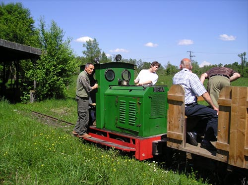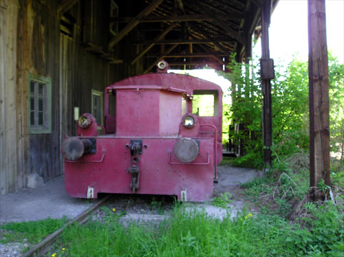 21.05.2005/ mw/ In den ehemaligen Gebäuden des Torfwerks Maier richtete der "Verein für Industrie- und Technikgeschichte im südl. Chiemgau e. V." ein Torfmuseum ein. Das Museum beherbergt viele Exponate zum Thema Moor und Torf, z. B. die letzte in Europa existierende Torfballenpresse, eine im Maßstab 1:1 nachgebaute Moorleiche und natürlich eine Feldbahn. Wenn man eine Führung durch das Museum mitmacht, fährt man mit der 880mm Bahn durch das Betriebsgelände. Den Zug zieht Diema 1945/1956. Es gibt auch noch eine 600mm Strecke, auf der Lok Gmeinder 4761/1954 eingesetzt wird. Die zweite 600mm Lok, ein Strüver Schienenkuli, steht als Ausstellungsstück in der Entladehalle. Das Torfmuseum liegt dierekt neben der Bahnstrecke München - Salzburg und besitzt einen Gleisanschluss. Auf diesen Gleisen ist Lok Windhoff 405/1937 abgestellt. Der Besuch des Museums lohnt sich auf jeden Fall, die Öffnungszeiten erfährt man unter www.torfbahnhof-rottau.de.