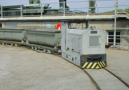 08.-11.09.1987/ FiB/ Entlang des Inns werden zahlreiche Staustufenkraftwerke betrieben, auf denen Feldbahnen zum Abtransport des angeschwemmten Treibholzes verwendet werden. Das Kraftwerk der Staustufe Neuötting bei Fluß-km 91.1 wurde 1951 fertiggestellt. Werkstor und Absturz liegen rechts des Inns. Die Spurweite beträgt hier 800 mm, die Gleisanlage verfügt über keine Weiche. Neben der Lok sind zwei Lore vorhanden. Die seit Eröffnung eingesetzte Gmeinder-Lokomotive wurde 1975 von der heute vorhandenen Diema abgelöst.