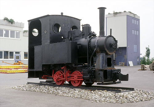 06.06.2004-info/ pz/ Eine der einst vorhandenen Baustellen-Feldbahnlokomotiven wurde als Denkmal im Bauhof aufgestellt. Seit 2003 verfügt man auch über eine neue Streckenlok, die bei der Bayerischer Cargo Bahn GmbH BCB eingestellt ist.