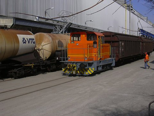 03.02.2004/ pp/ Die Werklok ist zur Zeit in HU bei LSB in der Schweiz. Als Leihlok fährt hier eine Moyse-Lok von LSB. Diese war früher bei Flachform in Schwerte im Einsatz.
