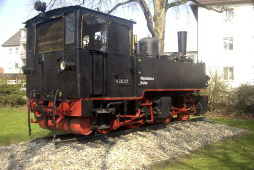 Denkmal, Bad Buchau: Vor dem ehemaligen Bahnhof erinnert die 99 637 an die Federseebahn. (Foto: 07.12.2005, Wolfram Berner)