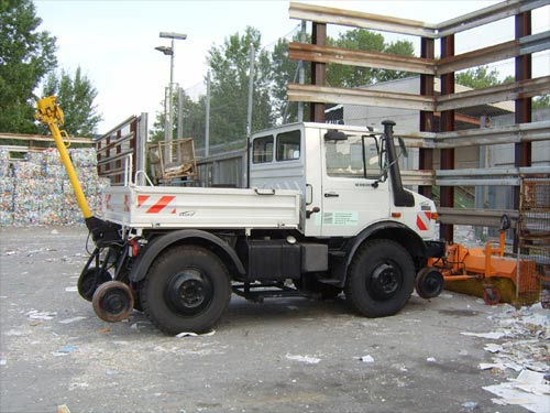 Zellner: Der Zweiwege-Unimog bei Zellner-Recycling. (Foto: 25.07.2006, Manfred Uy)