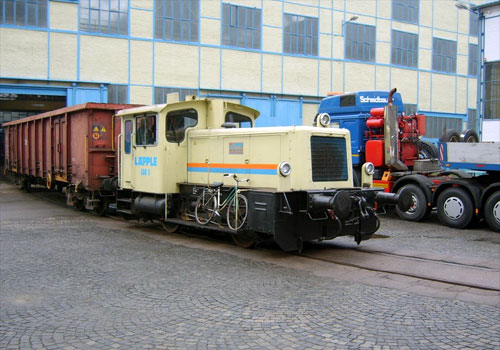 02.02.2004-info/ hf/ Als Läpple das Areal der Maxhütte 1991 kaufte, stand dort noch eine Lok und da der Firmenchef leidenschaftlicher Modellbahn-Sammler ist, hat er sie erhalten. Heute wird sie vorwiegend zum Rangieren von mit Blechteilen beladenen Waggons oder Pressformen benutzt, gelegentlich werden auch Gäste in einem alten Personenwaggon, zärtlich "Donnerbüchse" genannt, chauffiert (so auch im Sommer 2003).