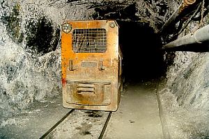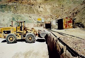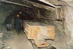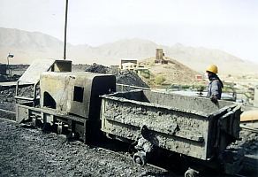 Nordwestlich der Stadt Kerman liegt ein größeres Steinkohlerevier. Hier gibt es noch eine Reihe von Tiefbaugruben, die fleißig Kohle abbauen. Fährt man durch das hügel- und schluchtenreiche Land, so fallen einem überall alte Stollenmundlöcher, Halden und Gebäude auf. Wie gern wäre ich hier stundenlang rumgeklettert um ein bisschen zu stöbern. Leider war der Werksschutz hier recht streng, so dass wir nirgends fotografieren durften. Die Grube Babnizu ist durch mehrere Schächte und Tagesstollen erschlossen. Auch hier geht es nicht ohne Grubenbahn. Wir befuhren einen Tagesstollen, in dem hauptsächlich Versatz nach untertage zur Verfüllung der Abbaue transportiert wird. Eingesetzt werden große russische Akkuloks mit herkömmlichen Kipphunten auf 600 mm-Spurweite. Die Befahrung des Tiefbaus war eine abenteuerliche Expedition. Wir befuhren einen Abbau in steiler Lagerung, wobei wir uns ca. 15 m durch ein enges Rolloch senkrecht nach unten zwängen mussten. Die Bergbautechnik ist, verglichen mit der im Ruhrgebiet, äußerst primitiv. Die Kohle wird hier noch mit dem Abbauhammer gewonnen. Ausgebaut werden die engen Abbaue ausschließlich mit Holz.