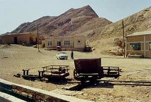 Im Zentral-Iran am Rand der großen iranischen Wüste, ca. 250 km östlich von Isfahan, liegt dieses altertümlich anmutende Bergwerk, welches Blei-Zink-Erze aus einem Erzgang gewinnt. Die Lagerstätte ist durch sechs Schächte bis in 240 m Teufe erschlossen. Untertage und z.T. auch übertage wird eine Grubenbahn mit 600 mm Spurweite eingesetzt. Das untertägige Streckennetz beträgt ca. 40 km. Die Loren werden händisch bewegt. Früher gab es Diesellokbetrieb, zwei englische Hunslet-Maschinen mit unbekannten Daten stehen nahe der Aufbereitung abgestellt. Eine Lok wird anscheinend wieder repariert. Untertage fühlt man sich in eine vergangene Zeit versetzt. Es herrscht allerfeinste Grubenbahnatmosphäre wie früher in Deutschland in den 50/ 60er Jahren. Der Betrieb ist staatlich und arbeitet nicht besonders wirtschaftlich. So werden mit insgesamt 300 Mann Belegschaft (120 untertage) nur 120 t Roherz pro Tag gefördert, woraus die marode Aufbereitung immerhin noch 100 t Erzkonzentrat erzeugt.